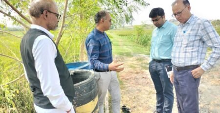 जब अमेरिका से आए अतिथियों ने यहाँ के प्रगतिशील किसान श्री अर्जुन मौर्य एवं रंजन मौर्य जी के खेतों का भ्रमण किया। 🌾