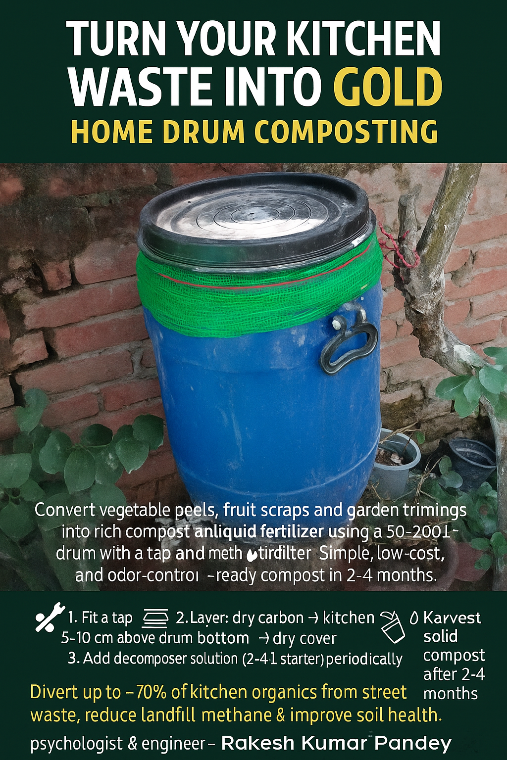 When households take small steps like composting, we collectively create cleaner roads, healthier soil, and a better environment for future generations. Every banana peel and vegetable scrap you compost is a step toward a Vish Mukt Vishv — a poison-free world.